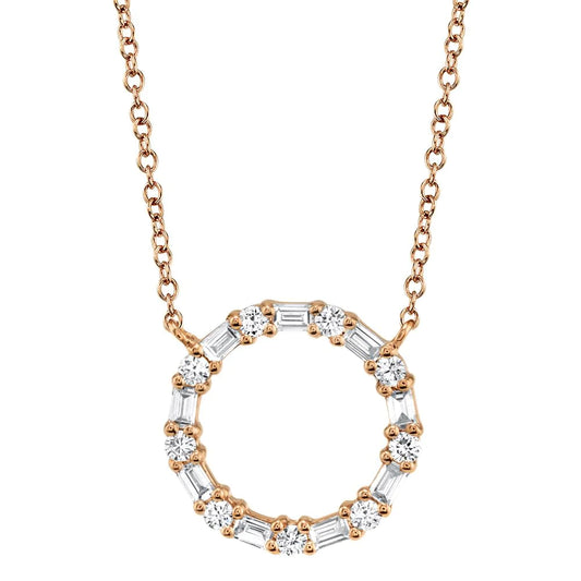 14K Gold 0.28 CT Diamond Baguette Open Circle Pendant Necklace Round