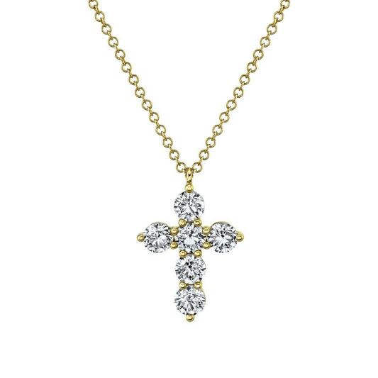 14K Gold 1.10 CT Diamond Cross Necklace Round Brilliant F VS2