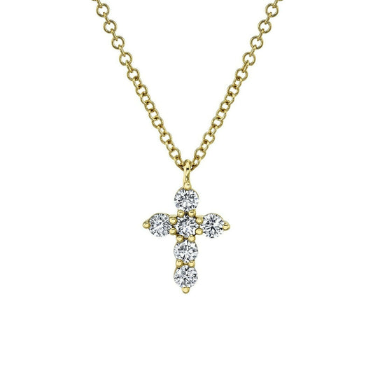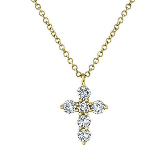 14K Gold 0.25 CT Diamond Cross Pendant Necklace Round Brilliant F VS2