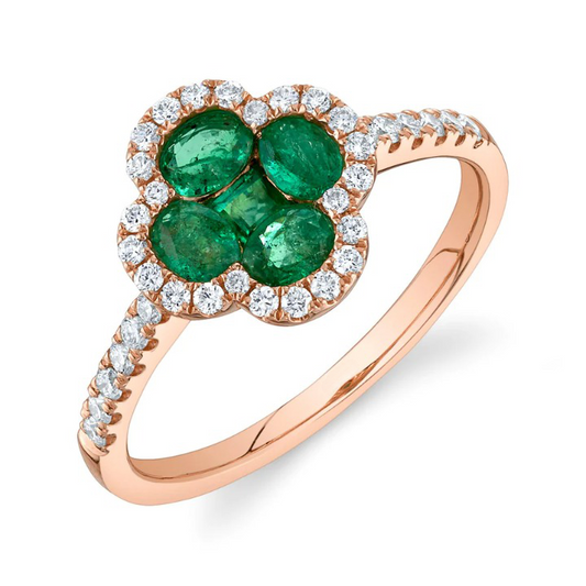 14K Gold 1.00 CT Diamond Emerald Clover Ring