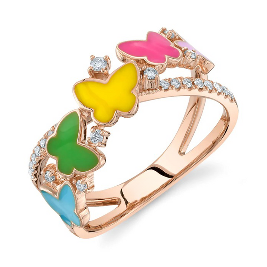 14K Gold Diamond Multi-Color Butterfly Enamel Ring
