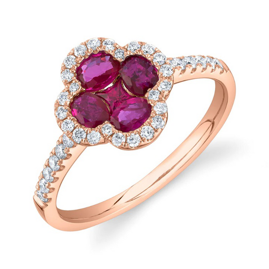14K Gold 1.23 CT Diamond Ruby Clover Ring