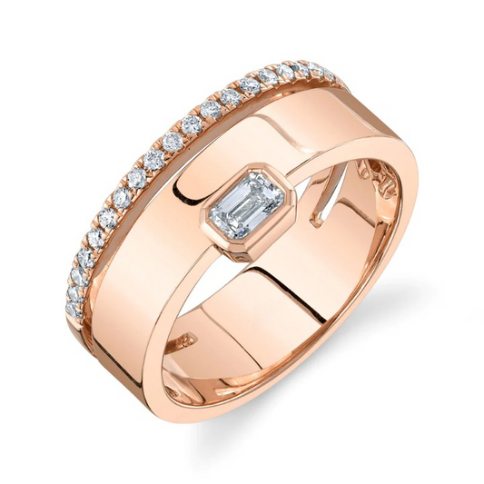 14K Gold Emerald-Cut Diamond Wedding Band Ring