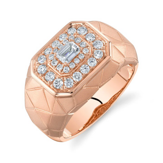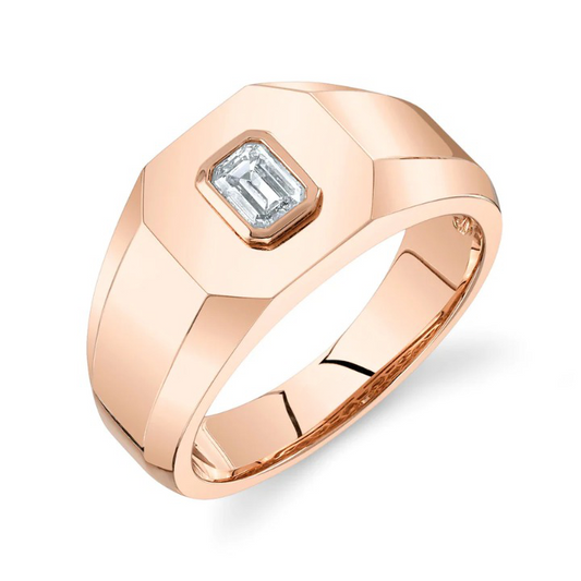 14K Gold Emerald-Cut Diamond Bezel Men's Ring