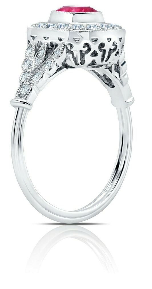Ruby And Diamond Platinum Oval Ring Art Deco Handmade Vintage Antique Finish