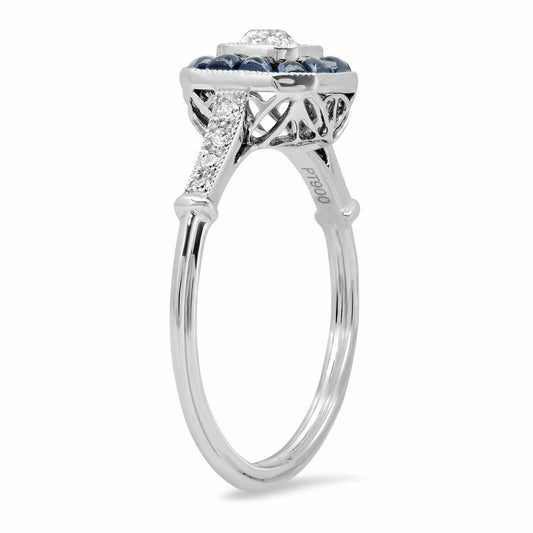 Art Deco Fancy Cut Blue Sapphire Diamond Platinum Ring