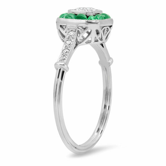 Diamond And Fancy Emerald Platinum Ring Art Deco Handmade