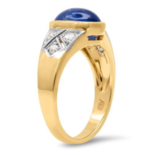 14K Gold 4.79 TCW Blue Star Sapphire Diamond Ring Certified Natural