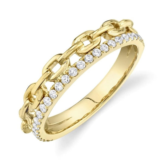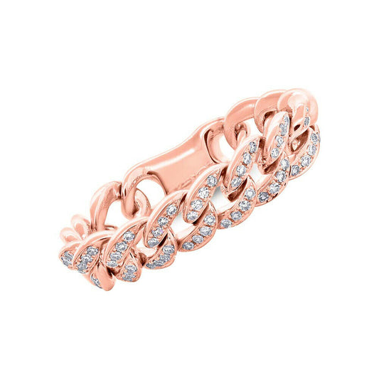 14K Gold 0.25 CT Diamond Link Chain Ring Women's Cable Band Natural Round Cut
