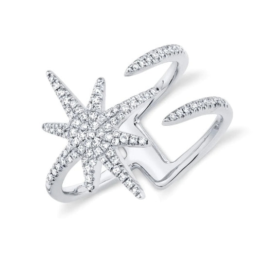 14K Gold 0.26 CT Round Cut Diamond North Star Burst Open Space Ring