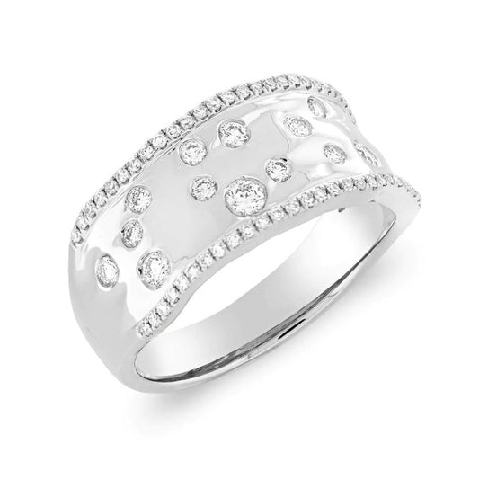 14K Gold 0.46 CT Unique Floating Diamond Ring Wavy Cocktail Statement Round Wide
