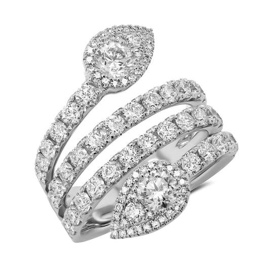 14K Gold 3.01 CT Diamond Swirl Wrap Ring Pear Teardrop Cocktail Statement