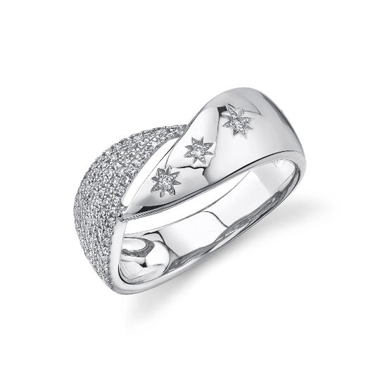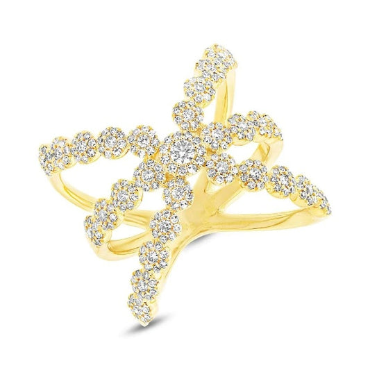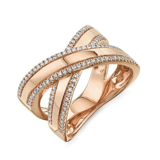 14K Gold 0.62 CT Diamond Bridge X Ring Criss Cross Crossover Multi Row Band Wide