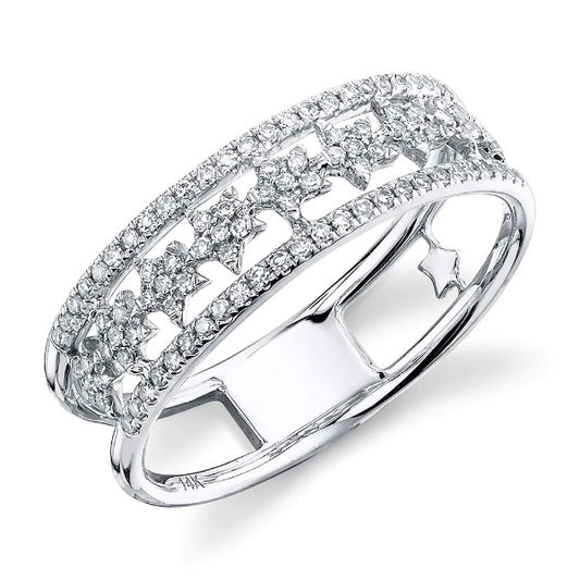 14K Gold 0.23 CT Diamond Open Band Floating Star Ring Round Natural Round