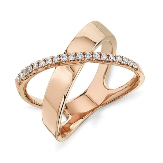 14k Gold 0.19 CT Diamond Crossover X Wide Ring natural Round Cut