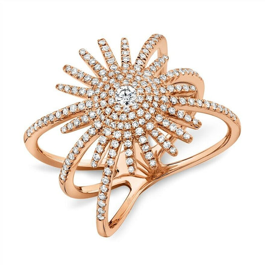 14K Gold 0.24 CT Diamond Star Ring Unique Cocktail Statement Right Hand