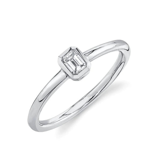 14K Gold 0.21 CT Emerald Cut Diamond Solitaire Ring Bezel Set Natural Statement
