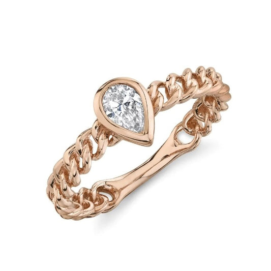 14K Gold 0.32CT Diamond Pear Cable Chain Ring Bezel Set Statement Women's