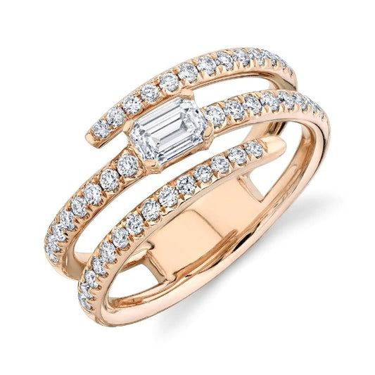 14K Gold 0.88 CT Emerald Cut Diamond Spiral Swirl Ring Natural Right Hand