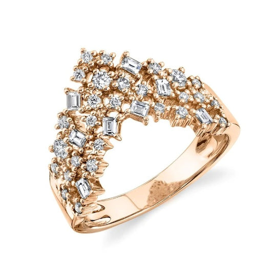 14K Gold 0.24 CT Diamond Chevron V Ring Baguette Round Cocktail Certified Natural