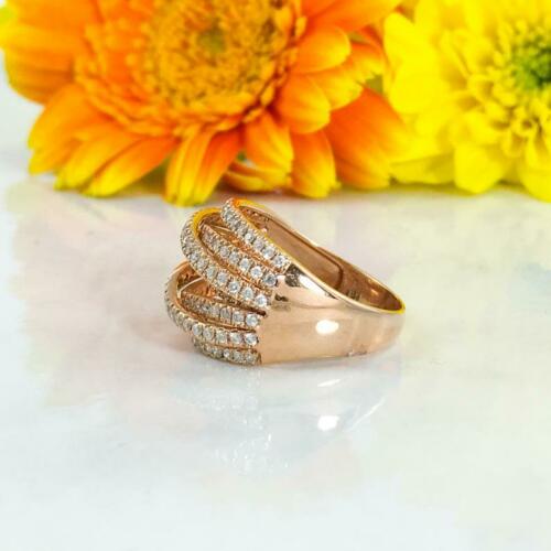 14K Gold 0.91 CT Diamond Bridge Crossover Ring Layered Crisscross Cocktail Womens