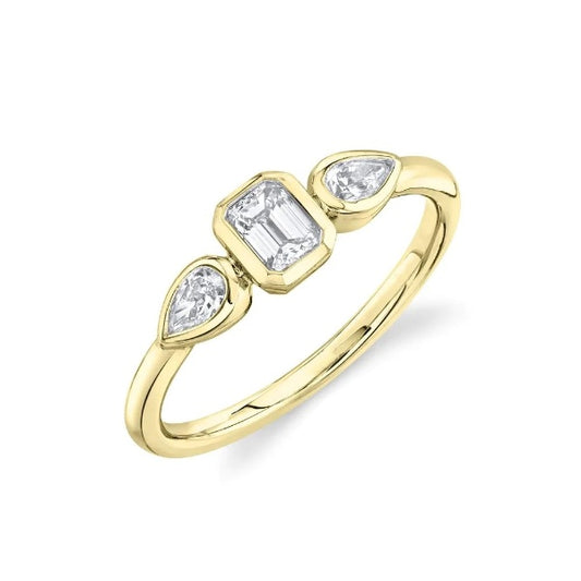 14K Gold 0.31 CT Diamond Emerald Cut Pear Cocktail Ring Women Statement Right Hand