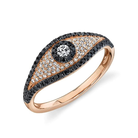 14K Gold 0.46 CT Diamond Eye Ring Black White Round Natural Evil All Seeing