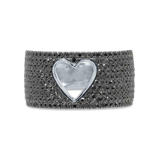 14K Gold 0.77 CT Black Diamond Heart Ring Open Statement Cocktail Natural Round