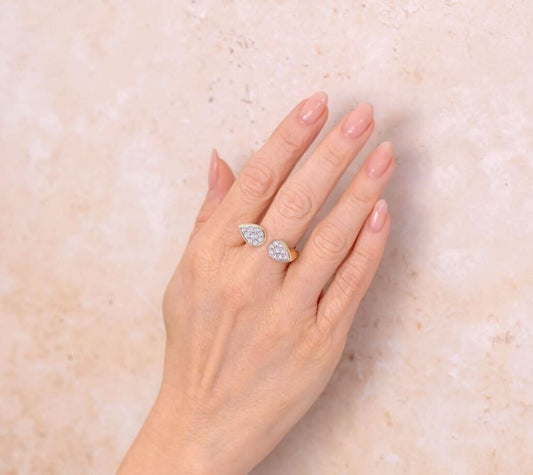 14K Two-Tone Gold Pear-Shaped Diamond Cocktail Ring