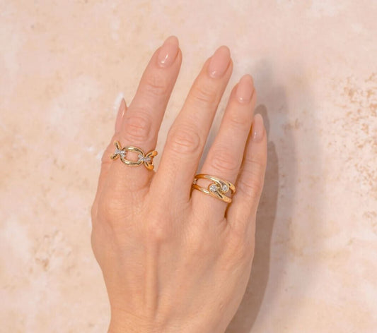 14K Yellow Gold Cocktail Diamond Oval Link Ring