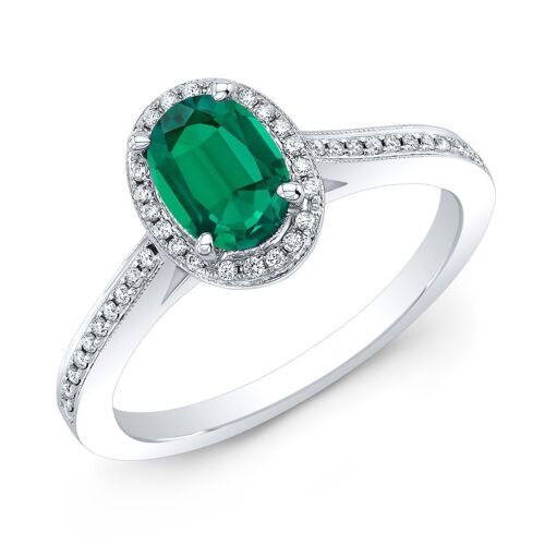 14K Gold 1.00 CT Oval Emerald Diamond Solitaire Ring