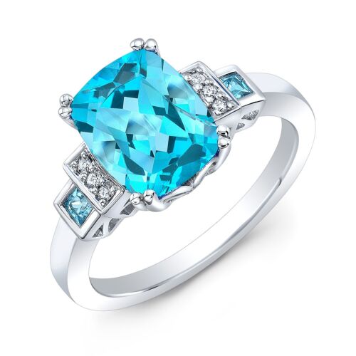 18K White Gold 6.32 CT Diamond Swiss Blue Topaz Ring