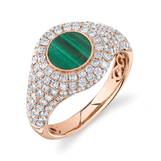 14K Gold 1.00 CT Diamond Malachite Signet Ring