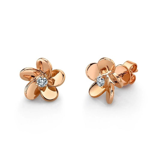 14K Gold 0.16CT Diamond Flower Stud Earrings Round Cut Natural Petals
