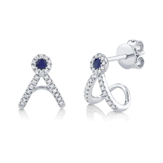 14k Gold 0.09 CT Diamond Sapphire Stud Cuff Earrings Natural Round Blue