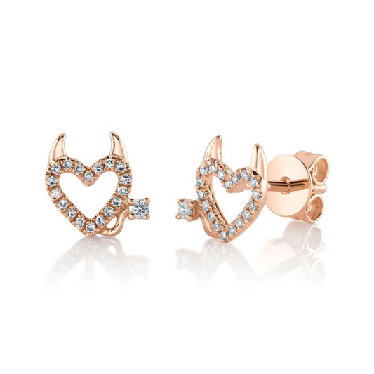 14K Gold 0.16CT Heart Cut Diamond Stud Earrings Bezel Set Natural