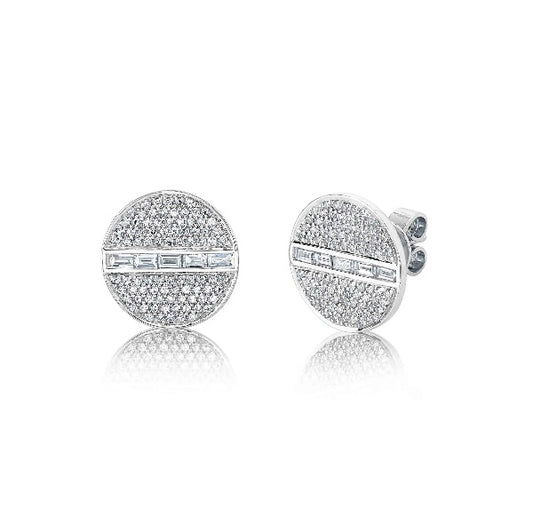 14K Gold 0.54CT Baguette Diamond Circle Stud Earrings Disc Natural