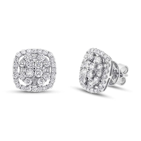 18K Gold 1.94 CT Round Baguette Diamond Square Cushion Stud Earrings