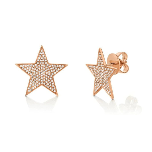 14K Gold 0.52CT Diamond Star Stud Earrings Round Cut Natural Jewelry