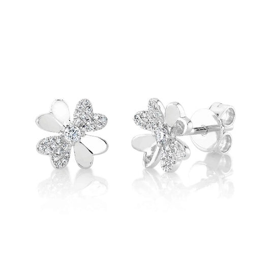 14K Gold 0.14 CT Diamond Clover Stud Earrings Round Cut Natural Pushback