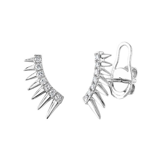 14K Gold 0.14 CT Spike Diamond Stud Earrings Spiky Round Cut Natural
