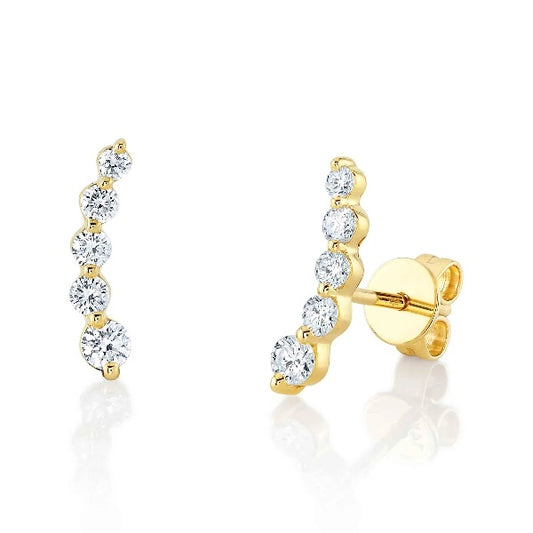 14K Gold 0.46CT Diamond Ear Crawler Earrings Climbers Round Cut Graduating