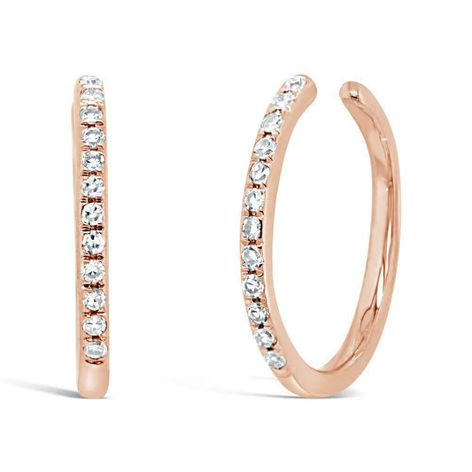14K Gold 0.08 CT Diamond Ear Cuff Earrings No Lock Round Cut Natural Hoops
