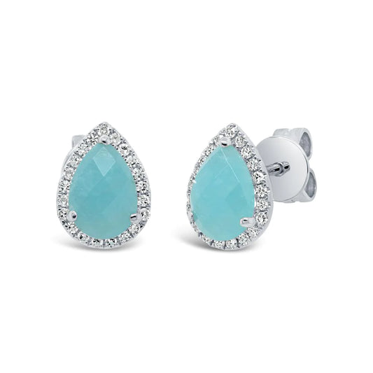 14k Gold 0.24CT Amazonite Diamond Pear Stud Earrings Pave Pushback Natural