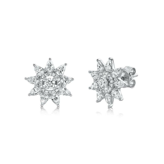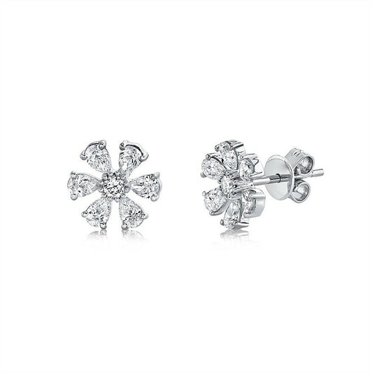 14K White Gold Pear Diamond Stud Flower Earrings Natural 1.10 CT Womens Round