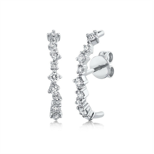 14K Gold 0.70 CT Pear Round Cut Diamond Stud Ear Crawler Earrings Natural