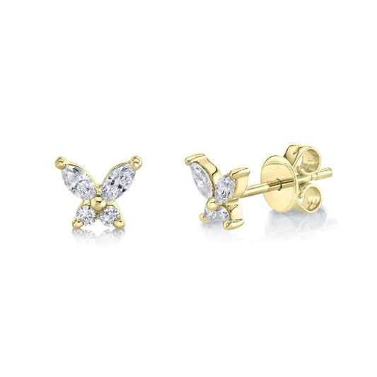 14K Gold 0.22 CT Marquise Diamond Butterfly Stud Earrings Natural Round Push Back