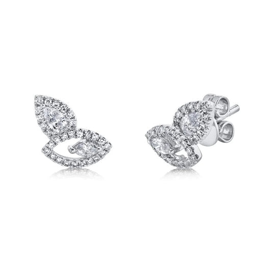 14K Gold 0.27 CT Pear Marquise Cut Diamond Stud Earrings Unique Minimalist Natural