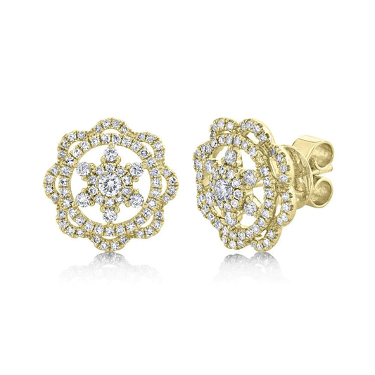 14K Gold 0.59 CT Diamond Star Scallop Stud Earrings Natural Round Cut