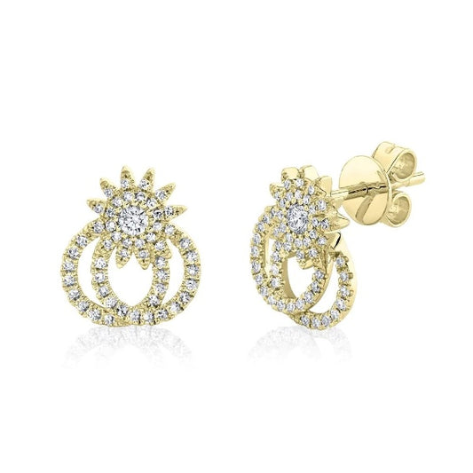 14K Gold 0.31 CT Diamond Starburst Stud Earrings Double Circle 2 Halo Natural